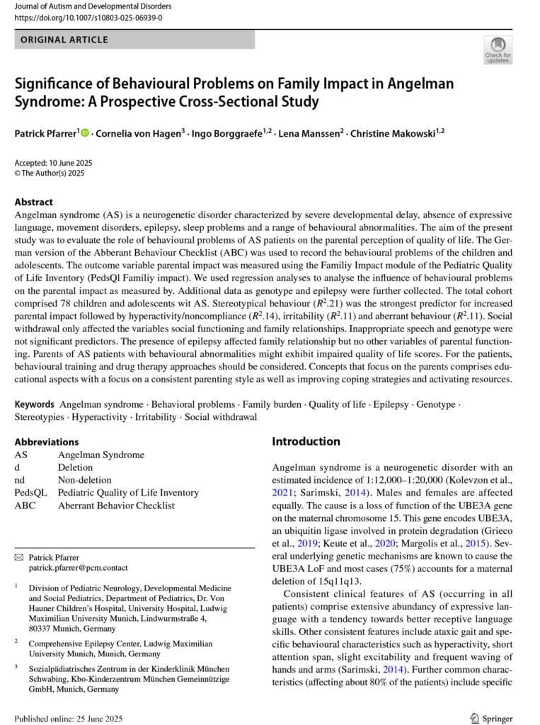 Die Untersuchung wurde in enger Zusammenarbeit mit Ärzten und Psychologen der LMU München durchgeführt. Ich bin allen Beteiligten und vor allen den Eltern und Kinder für ihre engagierte Unterstützung, ihre Offenheit, die fachlichen Anregungen und die wertvolle Zusammenarbeit aufrichtig dankbar. Ohne diesen gemeinsamen Einsatz wäre das Projekt in dieser Form nicht möglich gewesen.